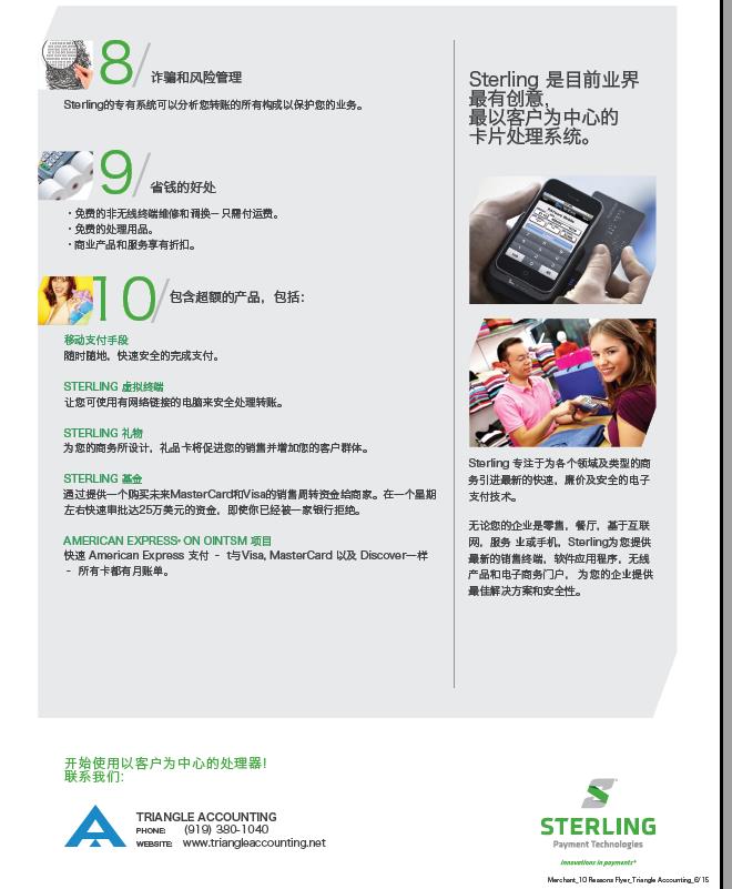 Triangle Accounting has been partnership with one of the largest credit card processor company Sterling Payment Technology today, we will provide credit card machine service to our client